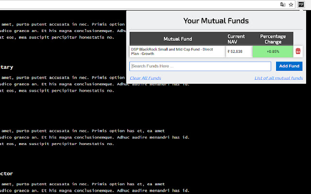 Note: Currently the extension supports only Indian mutual funds.