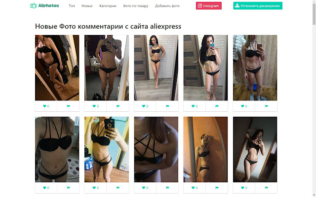 Расширение позволяет скачивать фотографии с Aliexpress на сайт aliphotos.ru для удобного просмотра.